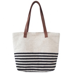 Best Price Trendy Bohemian Style Beach Casual Bag Durable Washable Solid Color with PU Leather Handle and Open Zip Closure